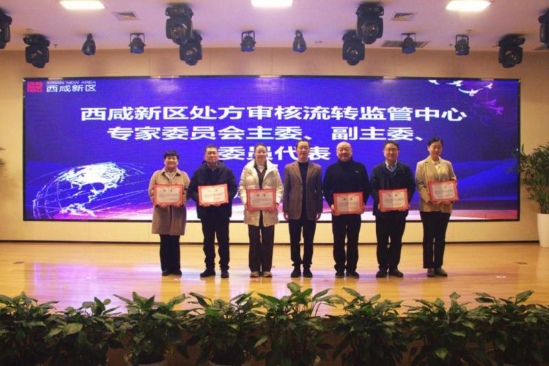 随后为“西咸新区处方审核流转监管中心专家委员会主委单位”授牌,为“西咸新区处方审核流转监管中心专家委员会”代表颁发聘书。