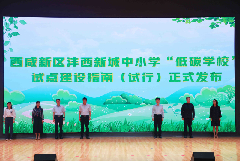 活动现场,播放了2024年“全国低碳日”主题宣传片,西安市生态环境局、西咸新区生态环境局、西咸新区教育体育局、沣西新城管理委员会有关领导联合发布《西咸新区沣西新城中小学“低碳学校”试点建设指南(试行)》,并向创新港西安交通大学附属小学授予西安市无废学校、沣西新城低碳学校,捐赠生态西安·童享碧蓝漫画图书,学生代表绘制精美绿色低碳作品向与会嘉宾分享、展示。