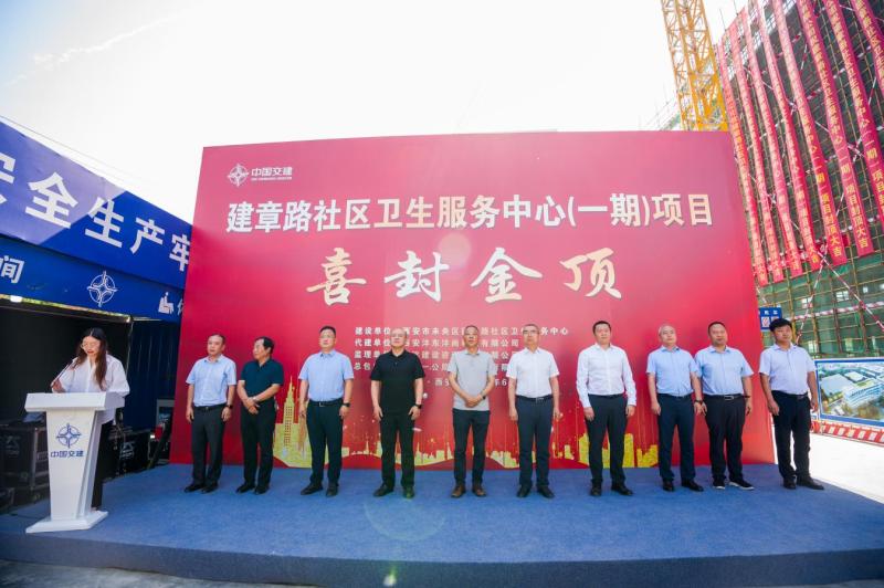 西咸新区社会事业服务局主要负责人,沣东新城、沣东集团、建章路街道、沣东城建、建章路社区卫生服务中心及项目建设单位负责人参加封顶仪式。