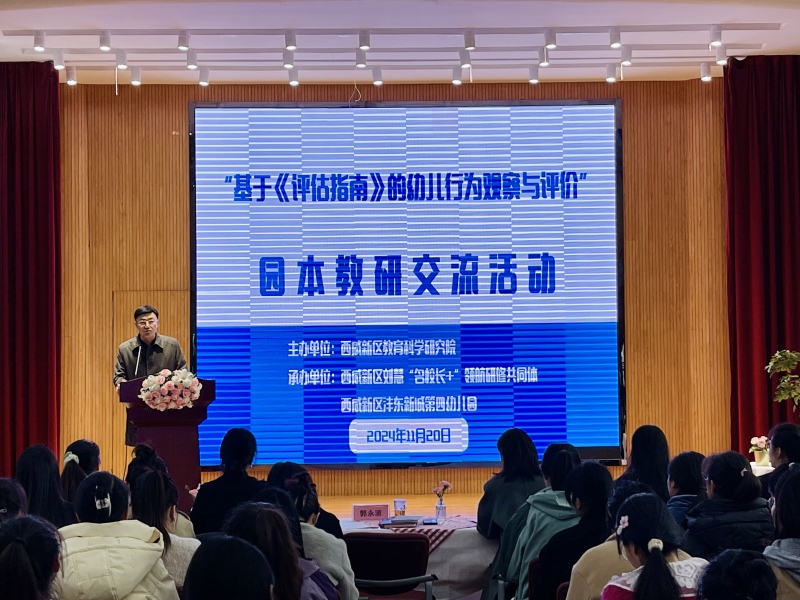 2024年11月20日上午,西咸新区2024年“基于《评估指南》的幼儿行为观察与评价”园本教研交流活动顺利开展。活动由西咸新区教育科学研究院组织,刘慧“名校长+”领航研修共同体、西咸新区沣东第四幼儿园承办,西咸新区学前兼职教研员及新区各幼儿园园长、教师代表共计160余人参与。