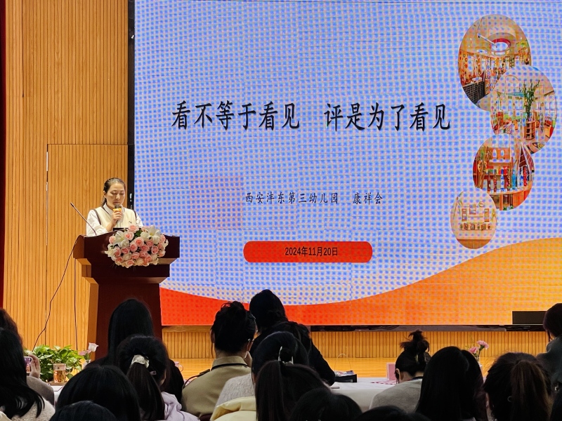 西咸新区沣东第四幼儿园园长刘慧以理论结合实际,深入浅出地阐述了教师应成为“观察者、支持者、引导者”的核心要义。