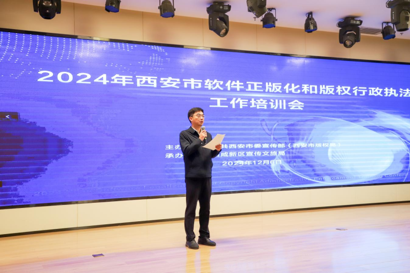 12月6日,由市委宣传部、市版权局主办,西咸新区宣传文旅局承办的2024年西安市软件正版化和版权行政执法工作培训会在西咸新区举办。市级软件正版化工作相关部门,全市宣传(版权)、教育、卫健、文化执法系统单位,市属国企,西咸新区及下属各新城各镇街220余人参加。