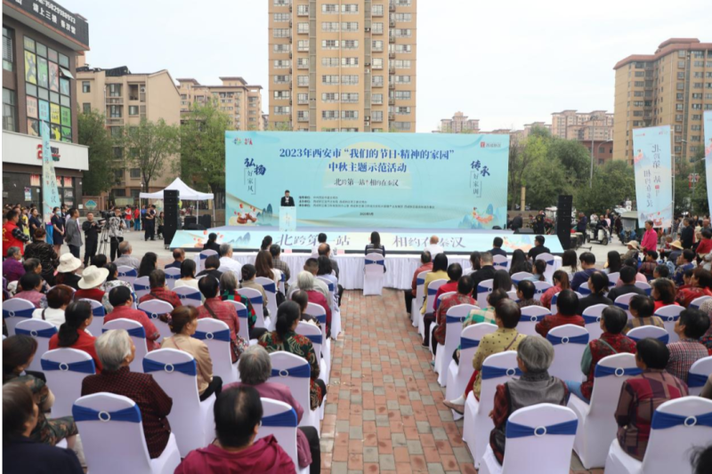 这便是“北跨第一站 相约在秦汉”——2023年西安市“我们的节日·精神的家园”中秋主题示范活动的现场。