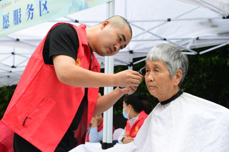 成群结队的孩子们,捧着免费糕点吃得香甜,嘴角都挂上了点心渣子;老人们则“白发仍戴花”,不约而同来到免费理发区,收拾起了鬓角的垂垂银丝;政务服务区前,大家排着整齐的队伍,办理天然气充值等业务……