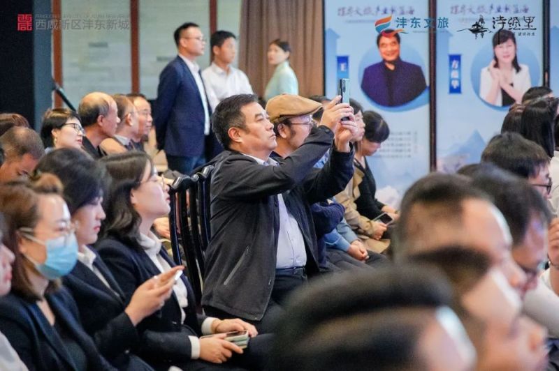 西安市文化和旅游局二级巡视员余亚军,西安市委宣传部副部长杨丽萍,西安市委宣传部文改文产办副主任范青青,西咸新区宣传文旅局局长周清,沣东新城管委会副主任马建昌,河南大学客座教授周旭东等领导嘉宾出席活动。