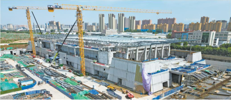 走进沣东新城陕西文化艺术博物院项目建设现场,项目团队正坚守一线攻坚克难,全力推进建设进度。目前,项目一期建筑《大秦》剧院已全面封顶,舞台设备安装等室内施工部分正在加速推进。