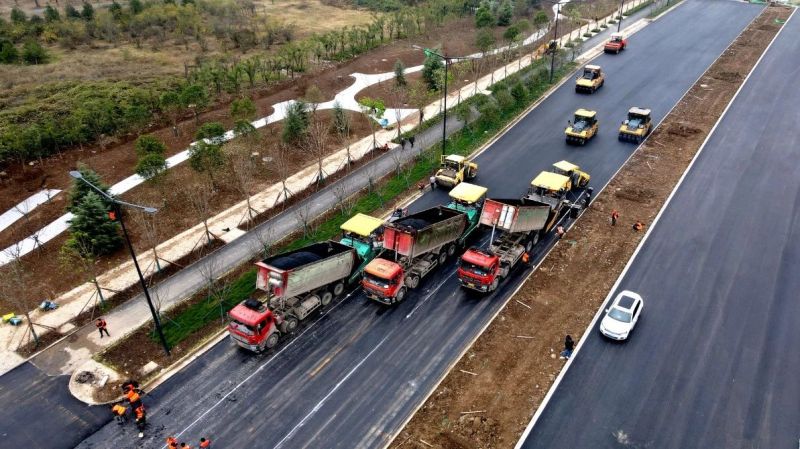 截至目前,该路段已完成全段机动车道沥青铺设,非机动车道及人行道完成70%,路灯、绿化等附属工程正在加紧施工。