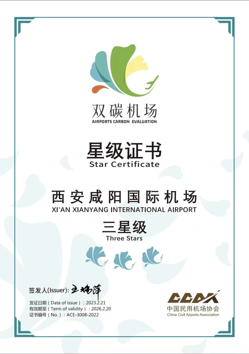 一是协同西安咸阳国际机场打造“绿色机场”新标杆。推动成立西安咸阳国际机场环境保护委员会,夯实机场区域内企业落实环境保护主体责任。并以机场扩建工程为契机,系统谋划实施建立智慧能源管理系统实现水电气冷热的高效利用、建设分布式光伏发电系统、岸电设施等实现清洁能源使用等多项环境友好项目,树立起全国绿色机场建设新标准,并荣获国内首批“双碳机场”三星级认证称号。