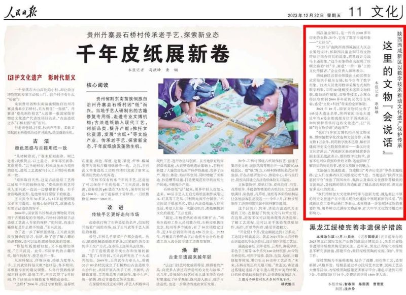 12月22日,人民日报刊发《陕西西咸新区以数字技术推动文化遗产保护传承这里的文物“会说话”》,聚焦秦汉新城用科技提升文化体验,全力推进文旅深度融合高质量发展,一起来看报道。