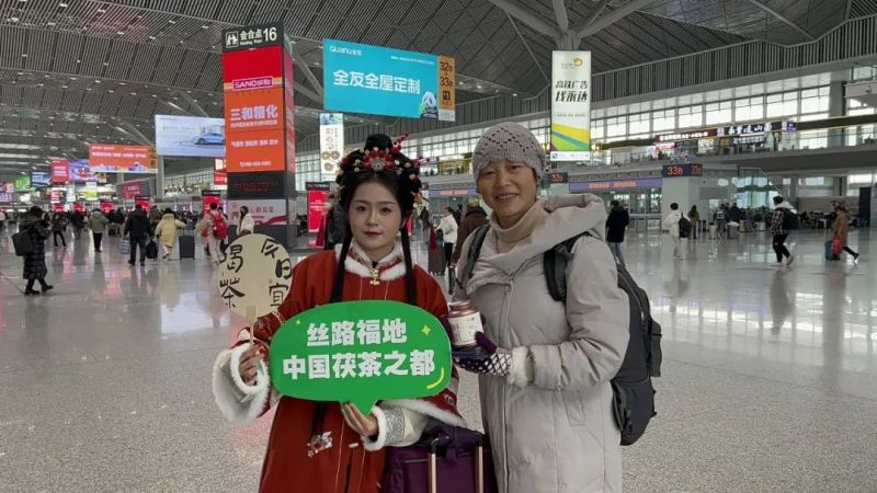 志愿者们一边送暖冬“茯”袋,一边还向北客站来往的旅客介绍茯茶镇、介绍茯茶文化、免费赠送茯茶,欢迎他们来茯茶镇品茯茶、吃美食,交到了不少“新朋友”。此外,还有不少茯茶镇的“老朋友”,一提起茯茶镇,就想起茯茶的醇香,如数家珍、赞不绝口。“我之前就喝过茯茶,消食解腻,健康好喝!”刚从外地旅游回来的常女士说。