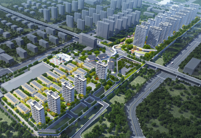 该项目位于沣东新城昆明路阿房宫高速口东南角,由中铁建融城集团投资建设,总投资50亿元,主要围绕地铁站点进行TOD综合开发,建设集立体交通、生态休闲、居住生活于一体的互联互通生态圈。