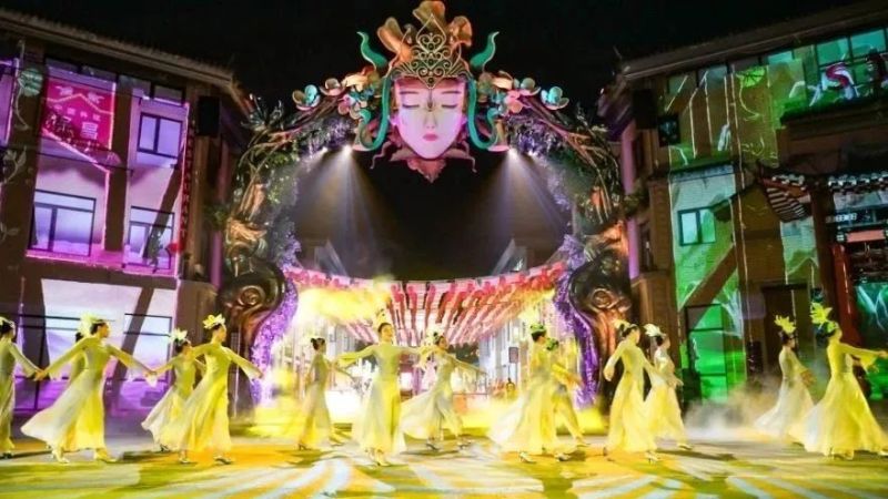 茯茶镇还有《百福茶俗》情景互动剧、《花映金茯》大型光影互动演出及茶艺展演等特色活动。在西安非遗大剧院内,陕北说书、华县皮影、安塞腰鼓、古乐演出、传统蹬技……一系列历史悠久、底蕴浓厚的非遗展演,为大家呈现出茯茶镇独有的文化魅力。