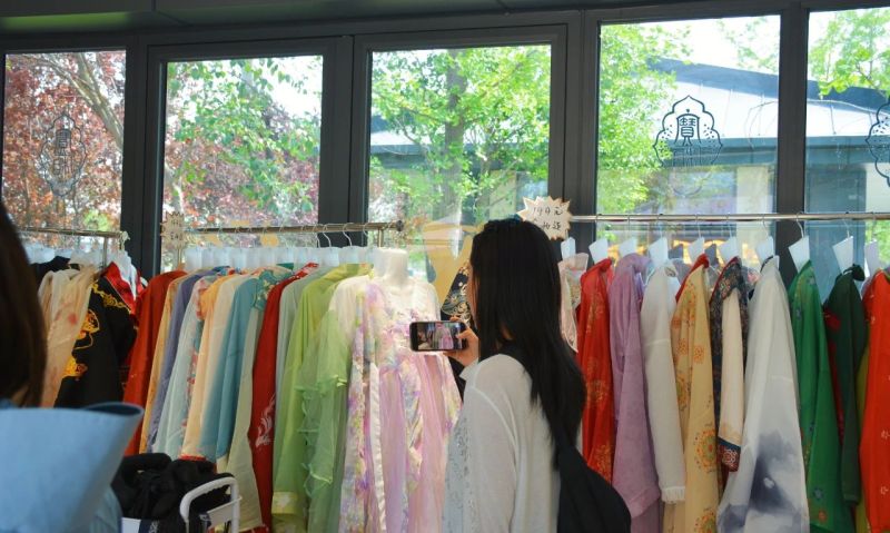 选一套心仪的汉服,化一个美美的妆容,拍一组漂亮的大片……身着汉服走进博物馆,沉浸式体验别样的“穿越秦汉之旅”。宝厢汉服店内有数百套汉服,为顾客提供出租出售和发型、面妆、摄影等服务,帮助游客随走随拍,记录下感受秦汉文化韵味的美好瞬间。