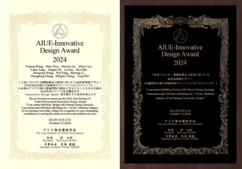 近日,亚洲城市环境学会第21届国际会议在日本东京举行,中国西部科技创新港7号楼荣获首届“AIUE创新设计奖”,大会为获奖团队颁发了证书和奖牌。