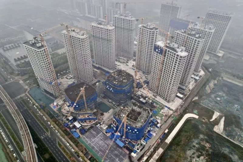 近日,由中国500强企业陕西泰丰盛合控股集团有限公司开发建设的泰丰盛合科创产业园一期8栋楼全面封顶,正式进入二次结构施工阶段。