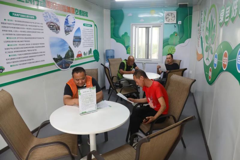 近年来,空港新城物流聚集区通行车辆逐年增加,为减少重型载货车辆怠速行驶造成的污染排放,西咸新区生态环境局(空港)工作部在物流聚集区设立了3个“生态小憩驿站”。驿站内有空调、座椅、饮水机等。司机等待装卸货时,由工作人员引导至驿站,既满足了司机的休息需求,也减轻了环境污染。