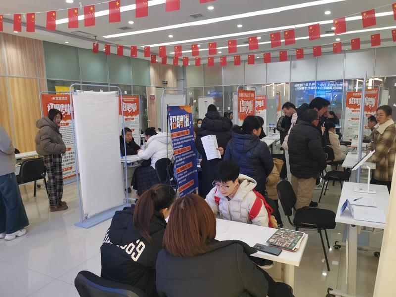 2月11日上午,窑店街道红色会客厅,由秦汉新城组织的2025年“春风行动”专场招聘会正在举行。作为春节后首场大型就业服务活动,现场汇集新能源、信息技术、现代服务等领域的23家企业,提供操作工、技术员、行政主管等132个岗位,吸引260余名求职者到场参与,36名群众现场找到满意岗位并通过初步面试。