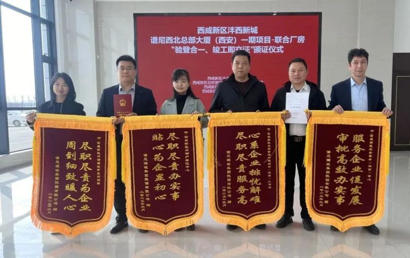 近日,沣西新城在谱尼测试集团陕西有限公司为谱尼西北总部大厦(西安)一期项目-联合厂房颁发竣工验收备案表和不动产权证书,在沣西新城政务服务大厅为陕西移动西咸生产指挥中心项目楼栋颁发竣工验收备案表和不动产权证书,标志着沣西新城工业项目“验登合一”改革和“竣工即交证”服务模式常态化,为项目建设大大节省了时间成本和经济成本,让更多企业享受营商环境改革成效。