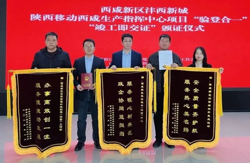 ▲为陕西移动西咸生产指挥中心项目楼栋颁发竣工验收备案表和不动产权证书