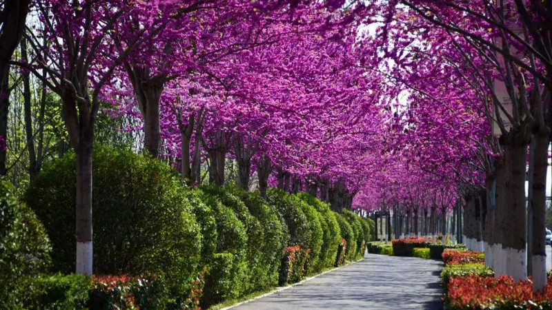 西咸新区秦汉中学校门口,千棵紫荆同时盛开!
