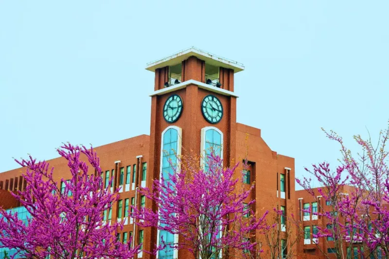 紫荆花期不长,用满树繁花诉说坚韧,正如校徽上那抹紫红,百年风雨未改其志,始终扎根大地,静守一方书香。