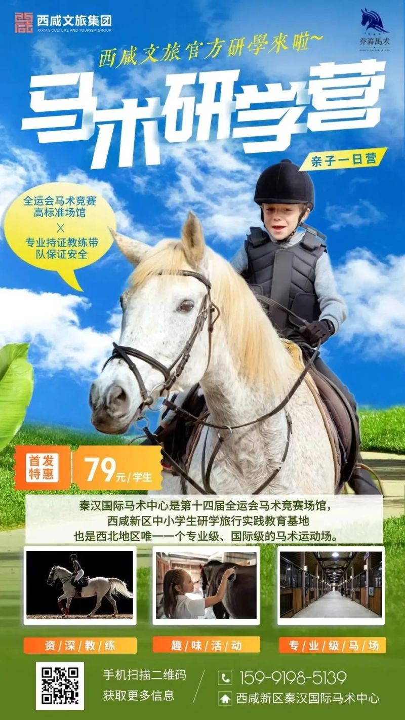 西咸文旅马术研学营将于8月16日(星期三)10:00,在西咸新区秦汉国际马术中心火热开营!
