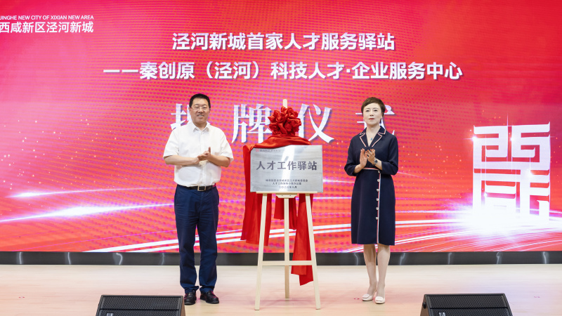 西咸新区党工委委员、泾河新城党委书记张宏伟,泾河新城党委副书记任炳群出席并共同为秦创原(泾河)科技人才·企业服务中心揭牌。泾河新城党委委员、管委会副主任张荣荣主持仪式。国家级领军人才——陕西一德新能源科技有限公司总经理何铭作交流发言。
