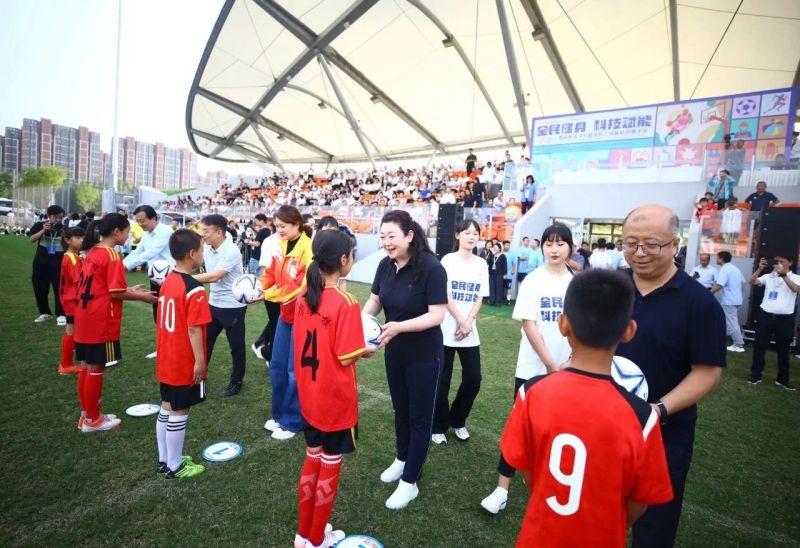 沣东新城党委副书记、总工会主席马艳红宣布职工体育科技嘉年华正式开幕,并与2008年北京奥运会女子10米气手枪冠军郭文珺,共同为学生代表捐赠体育器材,助力青少年体育事业发展。