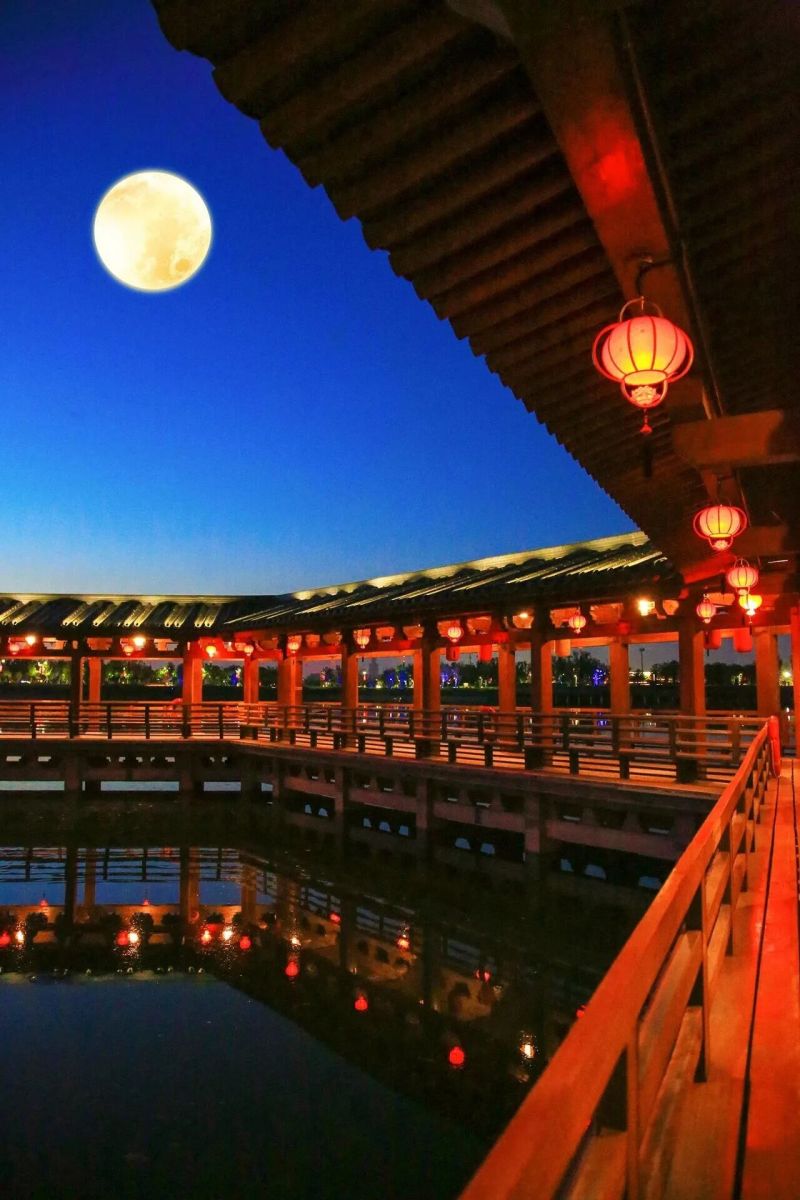 鹊桥:将鹊桥的弧形结构与月亮结合,拍出“桥上月牙”的创意画面,寓意美好。