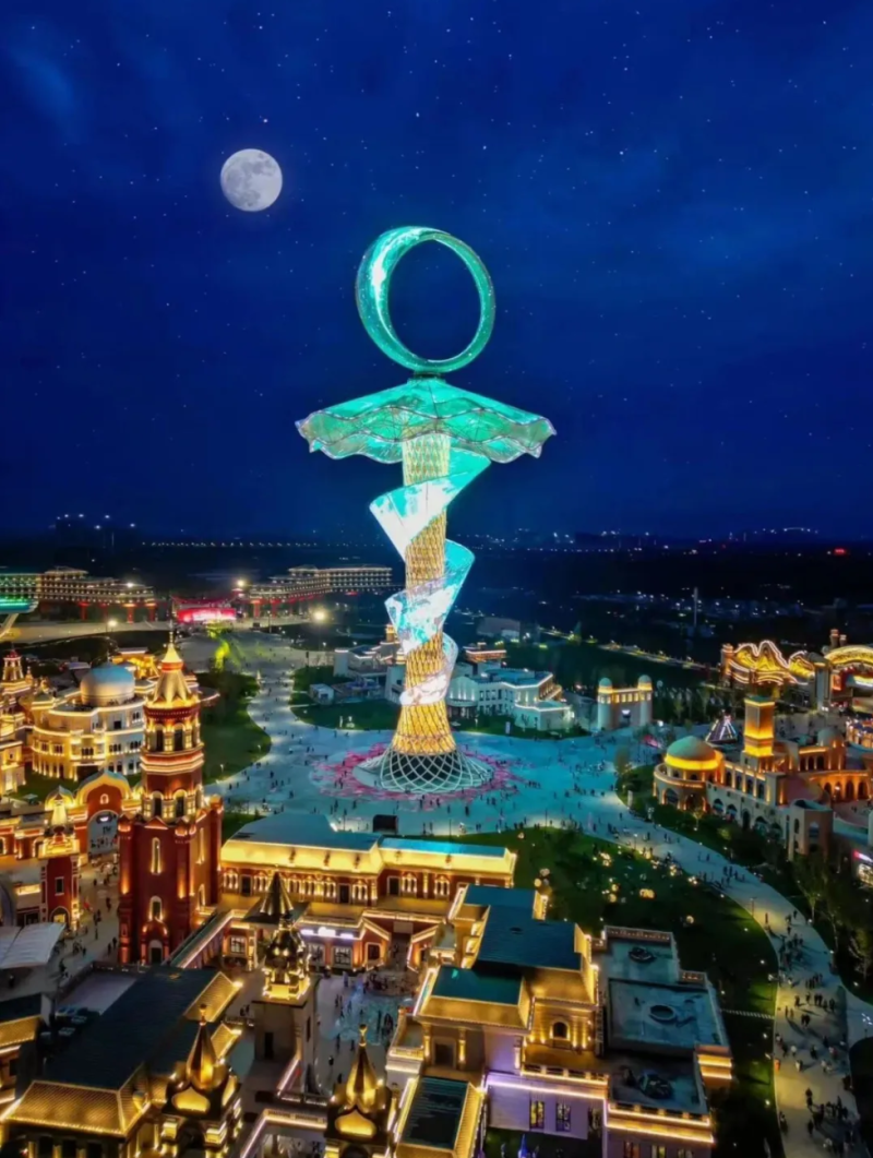 想要与众不同的赏月体验,丝路欢乐世界的iTower爱之塔是必去之地。这座139.21米的地标建筑,寓意“一生就爱你”,登顶俯瞰万家灯火,仰望空中圆月,别有一番风情。