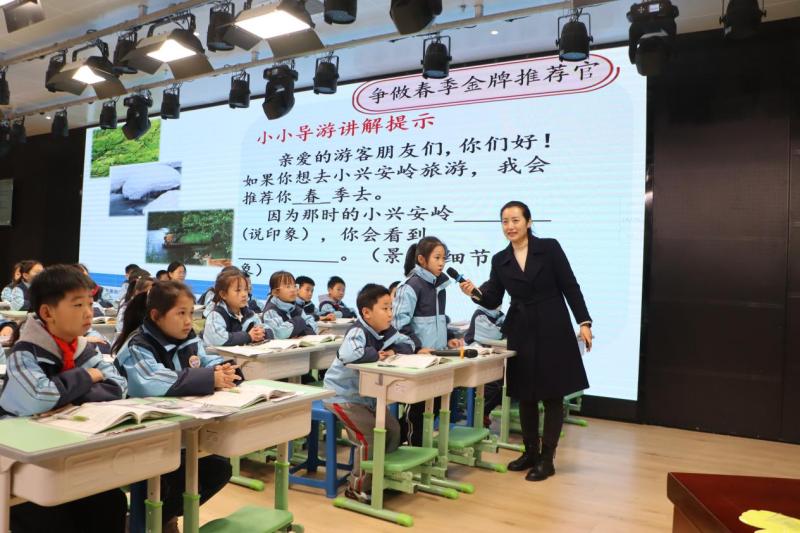 语文会场聚焦三年级“壮美山河”单元,徐俊丽、朱冬雨老师执教探究展示课,姚锦老师介绍单元项目化学习设计,实现从知识教学到主题建构的跨越;数学会场围绕“方向与位置”主题,张婉笛、张希老师执教并分享“小小向导养成记”项目案例,让学生在真实问题中应用数学。